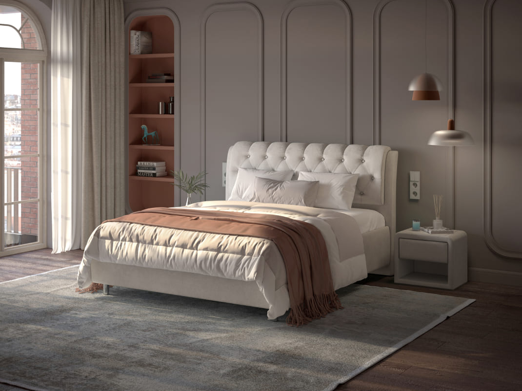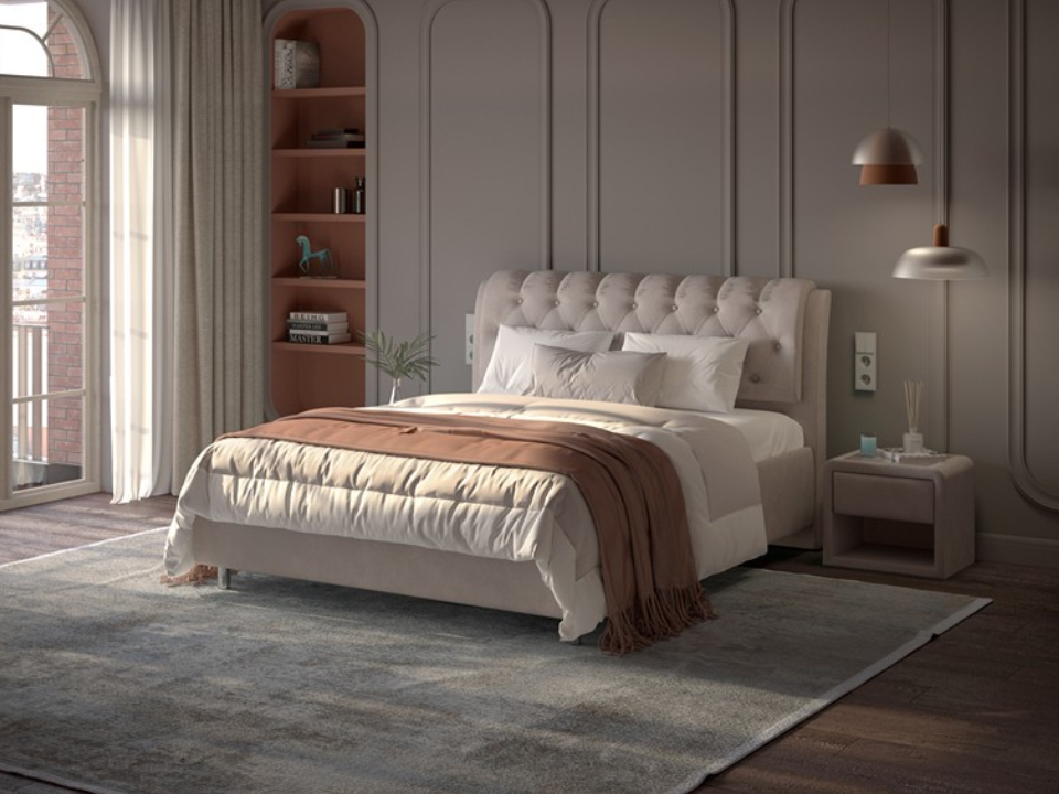 Расстояние над полом 10 см, широкий размерный ряд кровати и опция выбора опор из массива-это возможность создать собственное дизайнерское решение в спальне. Стыковка углов царгового пояса под 45 градусов обеспечивает надежное крепление и придает более эстетичный внешний вид.