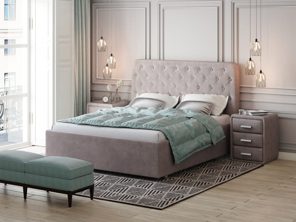 Кровать из экокожи можно протирать влажной тряпкой с мыльным раствором, для ухода за тканью велюр рекомендуется сухая уборка.