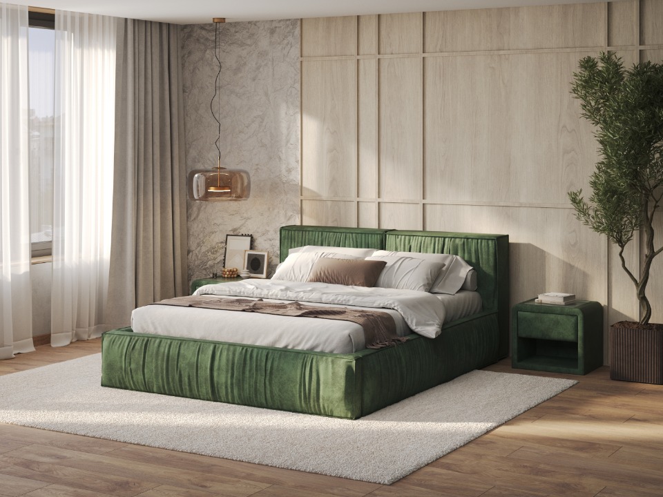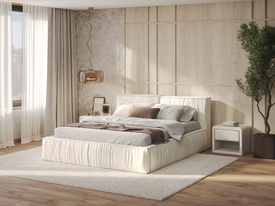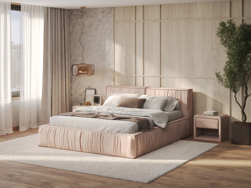 Просторная и мягкая, кровать Corra окружает вас объемным изголовьем c хаотичными складками на ткани, приглашая к расслаблению и отдыху. Её широкий царговый пояс расширяет пространство, а дополнив модель основанием по вашему выбору с помощью опции Base Select, вы обеспечите надежную поддержку для матраcа и сделаете вклад в уют и собственный комфорт дома.