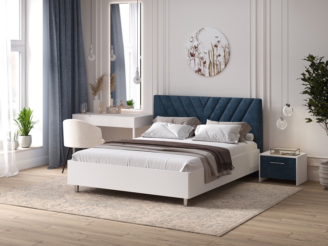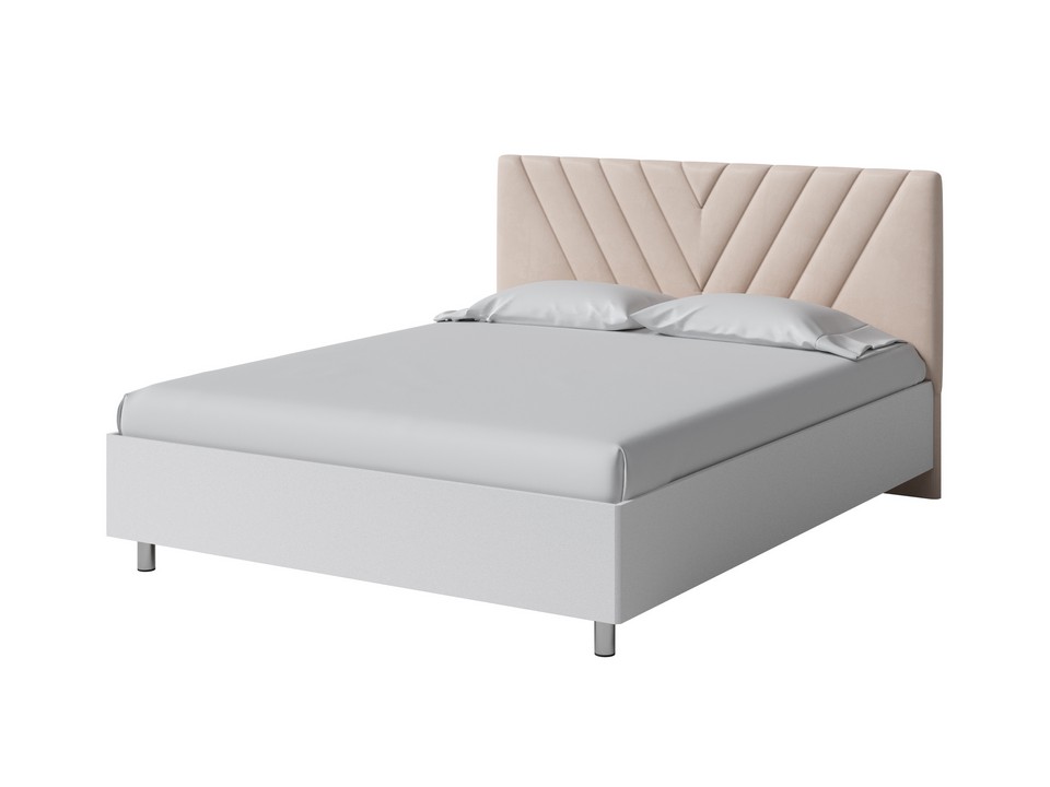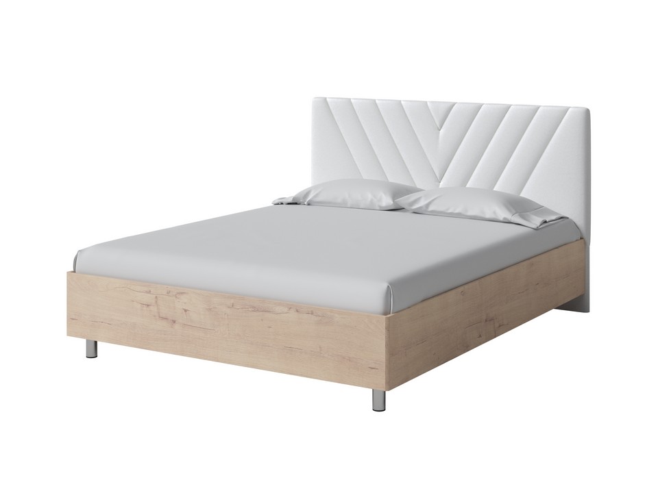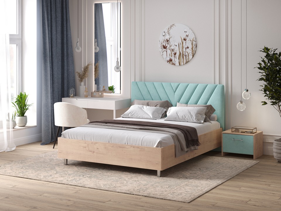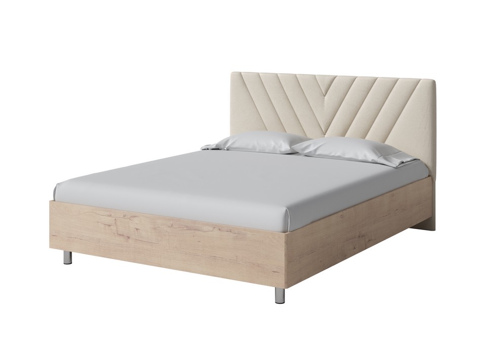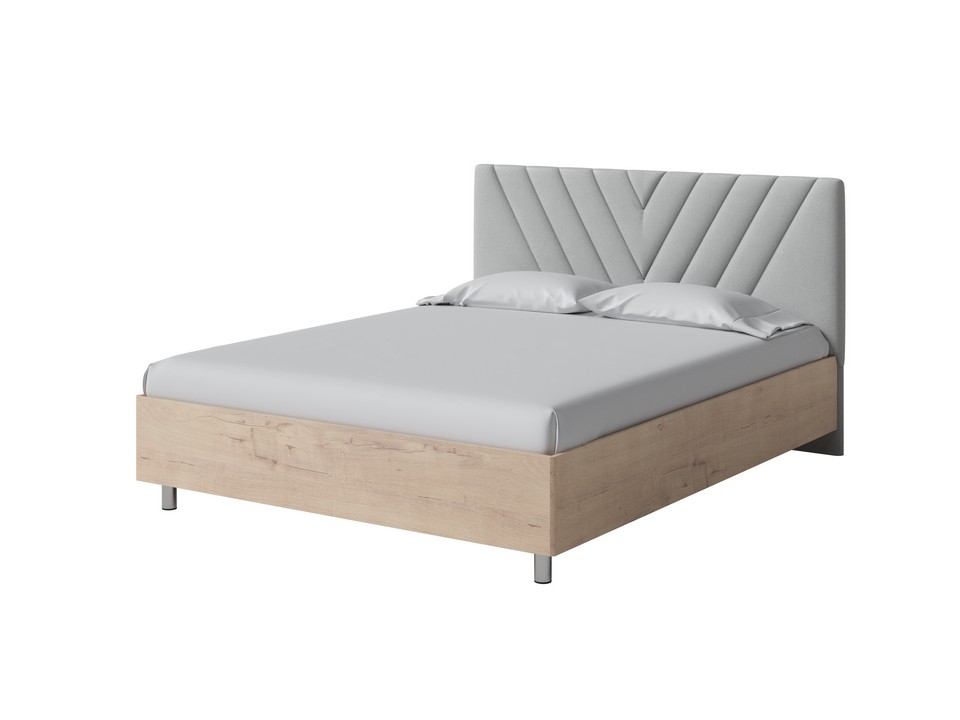 Кровать Ora имеет динамичное мягкое изголовье, изюминкой которого является объемная V-образная стежка.