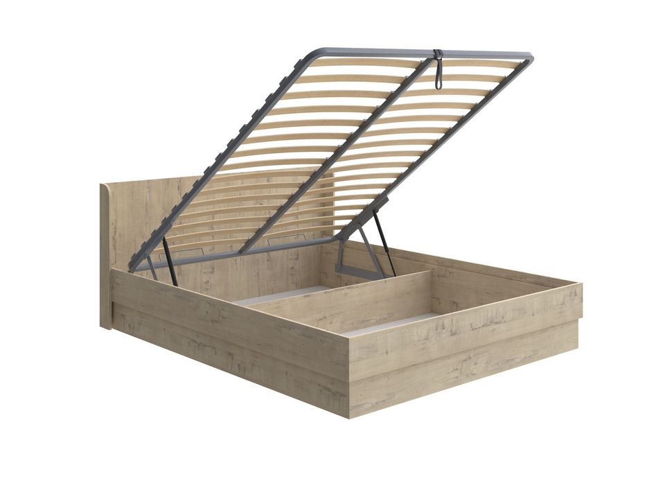 Металлическое основание с ламелями обеспечит правильную поддержку матраса, а подъемный механизм добавит удобства и расширит место для хранения. Полезная глубина ящика – 250 мм, туда поместится множество ваших вещей.