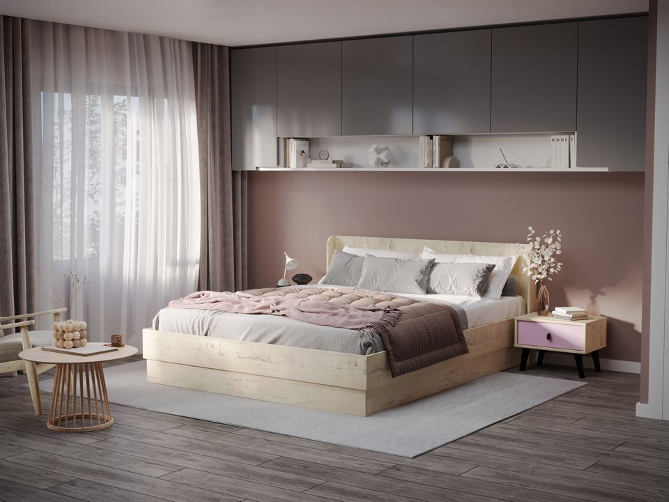 Слегка утопленный ящик добавляет модели изяществ и легкости, а также делает кровать травмобезопасной.
