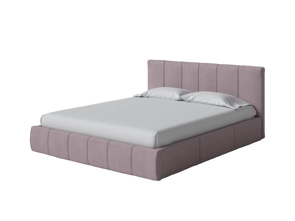 Кровать выполнена в современном дизайне: округлые царги и высокое изголовье с геометричной вертикальной стёжкой.