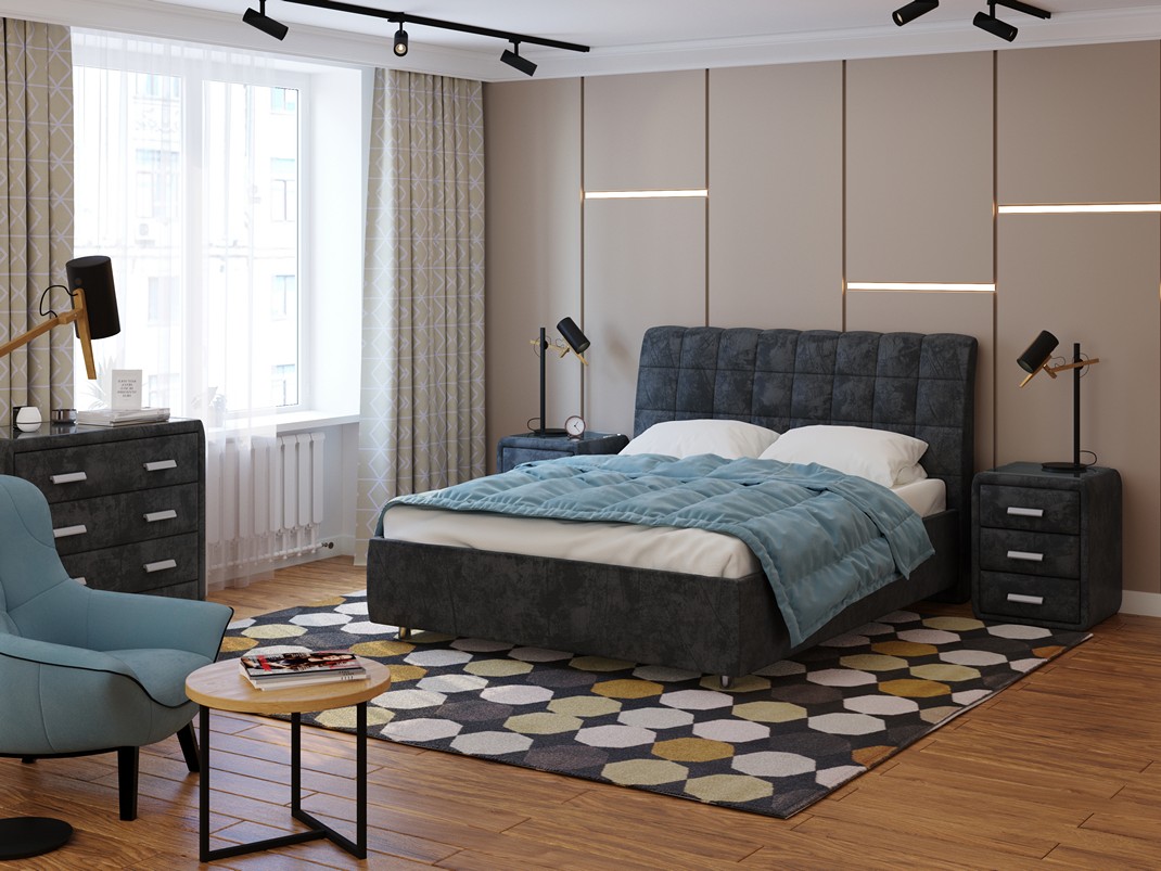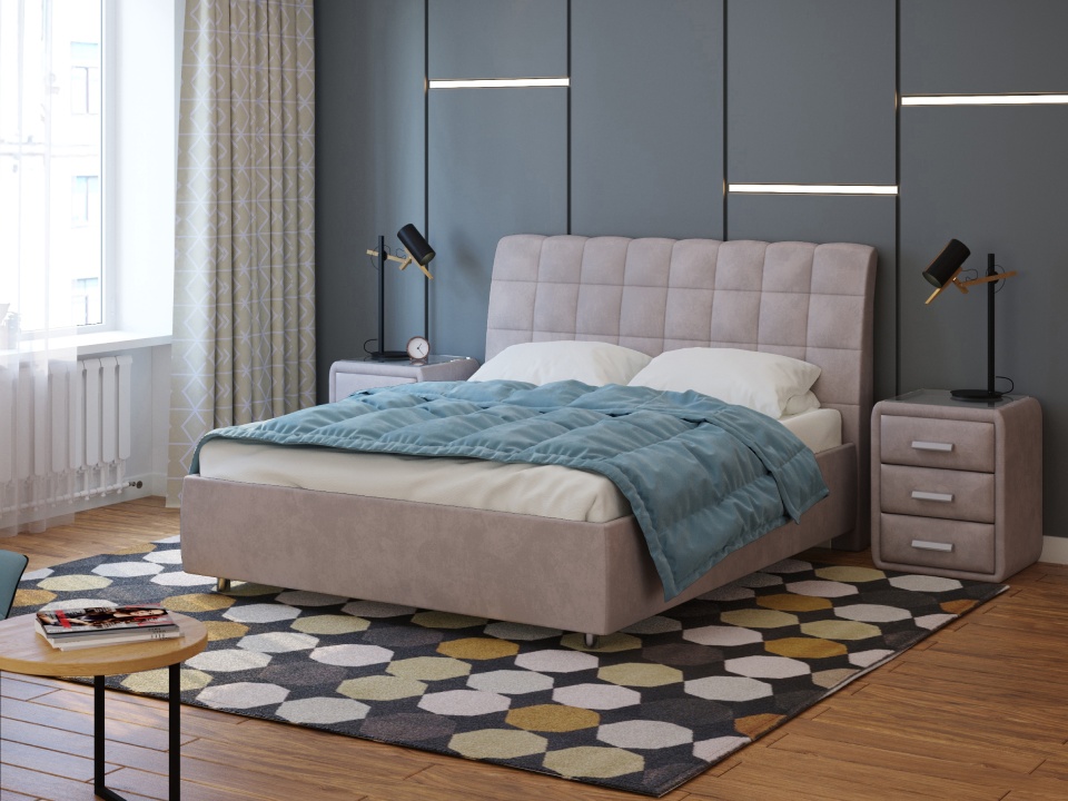 С кроватью Volumo ваша спальня всегда будет выглядеть на высоте. Спинка кровати Volumo украшена стежкой в виде квадратов. Создается впечатление, что она состоит из нескольких рядов равномерно расположенных объемных подушечек.